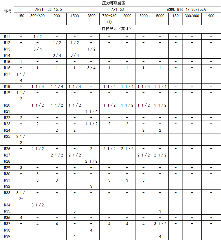 flexftallic風格R環(huán)式節(jié)點可以制造符合有關標準符合以下法蘭代號